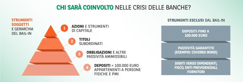 Gli strumenti che invece non possono essere in alcun modo coinvolti nelle procedure per il salvataggio interno delle banche sono: